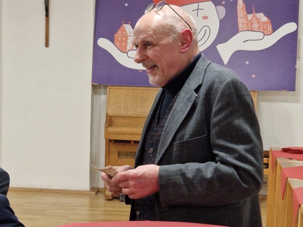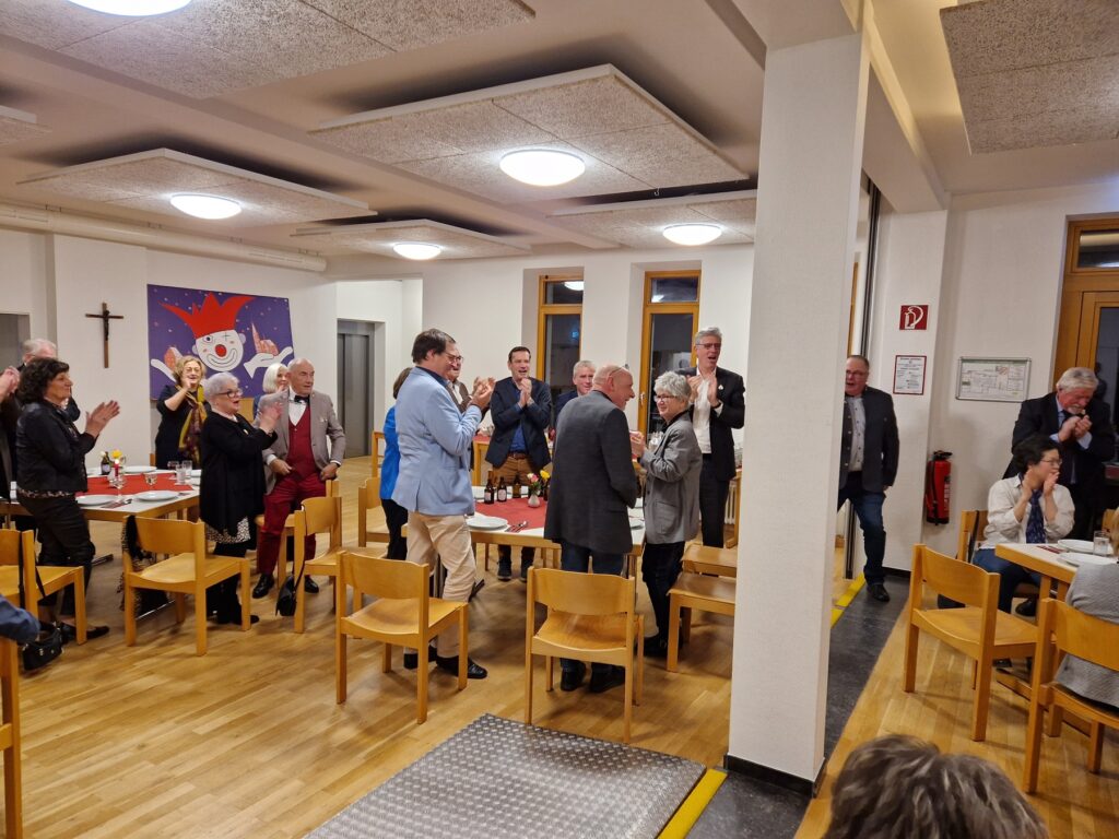 Mit seiner jetzigen lebhaften Rede im Gemeindesaal Heilig Kreuz, in der er u.a. von seinem Wechsel von Mönchengladbach in den „Frischluft“-Bereich Aachen, von seiner Studienzeit und der Übernahme der Buchhandlung berichtete, setzte Dr. Walter Vennen schon erste Impulse für den Schlagabtausch beim Herrenabend in der Gaststätte am Knipp, wo ihm am 27. Januar 2026 der Krüzzbrür-Orden offiziell verliehen wird. Es kann hier also durchaus bestätigt werden, dass Dr. Walter Vennen das Aufnahme-Kriterium der besonders humorvollen Art in jeder Hinsicht erfüllt. Die im Anschluss an seine Rede seitens der Krüzzbür-Ordensträger vorgebrachten Statements belegen dies ebenfalls. Und auch die Krüzzbrür-Hymne „Trinkfest und arbeitsscheu, aber der Kirche treu“, die an diesem Abend mehrmals angestimmt wurde, konnte er einwandfrei mitsingen.