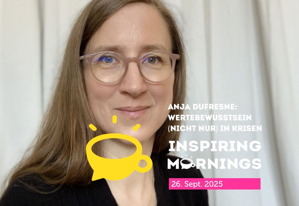 In ihrem Impuls „Wertebewusstsein (nicht nur) in Krisen“ beleuchtet Anja Dufresne die Bedeutung von Werten als persönlicher und gesellschaftlicher Kompass. Sie zeigt auf, wie ein bewusstes Werteverständnis uns zu mehr Klarheit und Erfüllung, Verantwortung und Miteinander führen kann, auch jenseits von Krisen.“