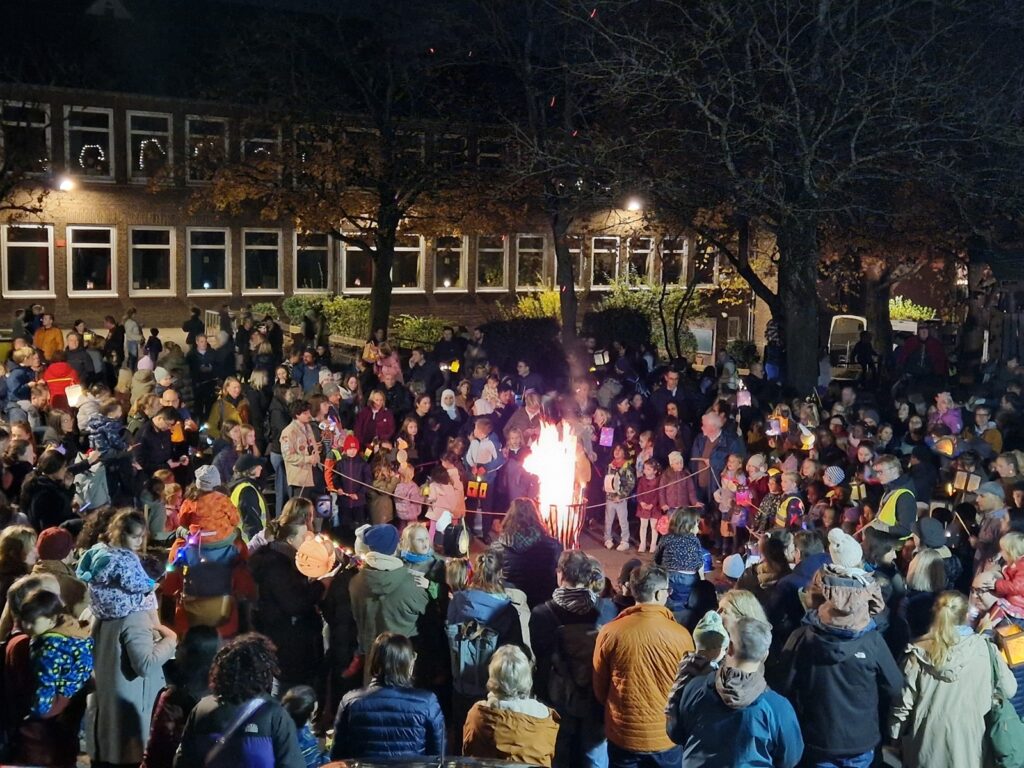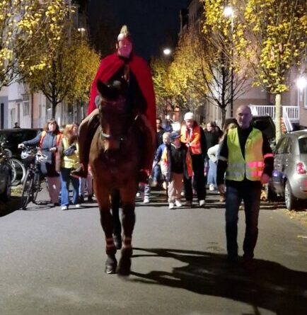 Kein Mucks war in der proppenvollen, abgedunkelten Heilig-Kreuz-Kirche zu hören, während die Kinder der von Evelyn Keusen vorgetragenen Martinsgeschichte lauschten und ihre Augen den projezierten Illustrationen folgten. Beim anschließenden Zug durchs Pontviertel, die Parkanlage am Ludwigsweiher hin zum Martinsfeuer auf dem Schulhof trugen die Kinder stolz ihre toll gebastelten, bunt leuchtenden Laternen und sangen St. Martin auf dem Pferd folgend die bekannten Martinslieder, die die Eilendorfer Stadtpfeifer ertönen ließen. Ein letztes Lied noch am Feuer auf dem Schulhof, dann bildete die Ausgabe der Weckmänner den Schlusspunkt des diesjährigen Martinszuges Heilig Kreuz. Zur Überraschung war der WDR erschienen, der neben der Produktion von Weckmännern in der Backstube hier nun auch die Weckmann-Verteilung vor Ort und das Beißen in einen solchen filmisch festhielt. Die Grundschulkinder und deren Eltern blieben nach Ende zum gemütlichen Ausklang noch ein wenig auf dem Schulgelände beisammen.